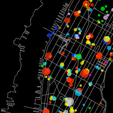 Хорошо бы, чтобы эвенты мест отображались с функцией [timeshine] — анонсированные события за две недели добавляли к маркеру тусклый индикатор (цвет-тип события) за неделю до события индикатор становился ярче каждый день (S в HLS) в день события индикатор становился бы ярче каждые пару часов (L в HLS) после события индикатор отображался б серым цветом 10дней