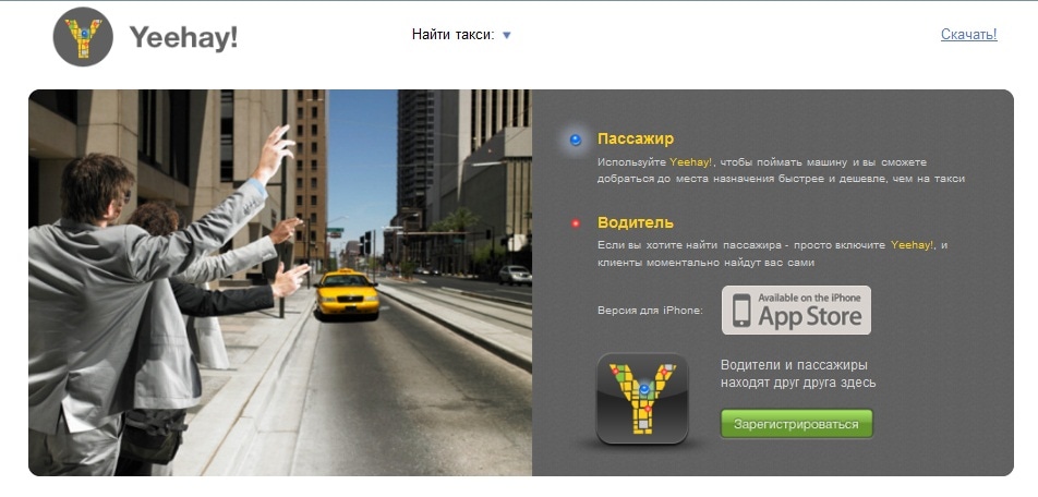Yeehay! – это мобильный навигационный сервис. Он сэкономит время на поиск и заказ такси – водители и пассажиры встречаются здесь.