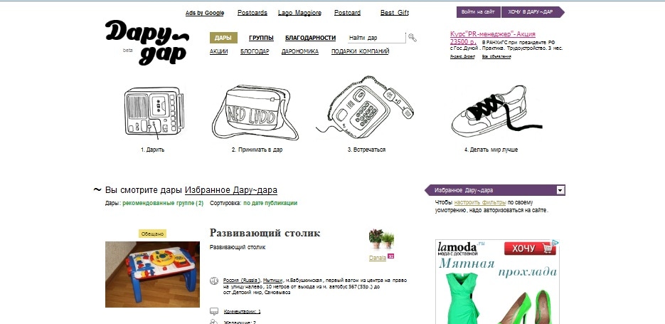 Дару-дар – это международное сообщество, в котором люди дарят друг другу свои вещи, свои возможности и свое время, безвозмездно, бесплатно, не требуя ничего взамен.