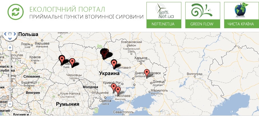 Проект Экологического портала «Пункты приема вторсырья» располагает информацией о местах приема и переработки мусора и отходов в семи городах Украины.