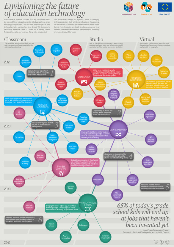 О том, как будет изменяться образовательное пространство подробно рассказывает инфографика агентства Envisioning Technology.