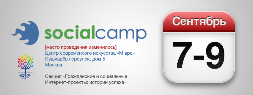 С 7-го по 9-е сентября 2012 в Москве пройдет третий SocialCamp Russia по адресу Центр современного искусства «Мар’c»: Пушкарёв пер., д. 5.