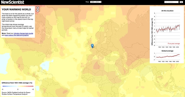 С помощью интерактивной карты «Climate Change» можно увидеть, как менялся климат на протяжении последних ста лет.