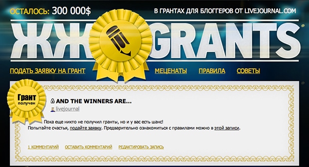 Помимо грантов такие журналы получат маркетинговую, редакционную и PR-поддержку со стороны ЖЖ, русскоязычный домен, а также платный аккаунт на год с момента одобрения гранта. С правилами выдачи грантов вы можете ознакомиться здесь.