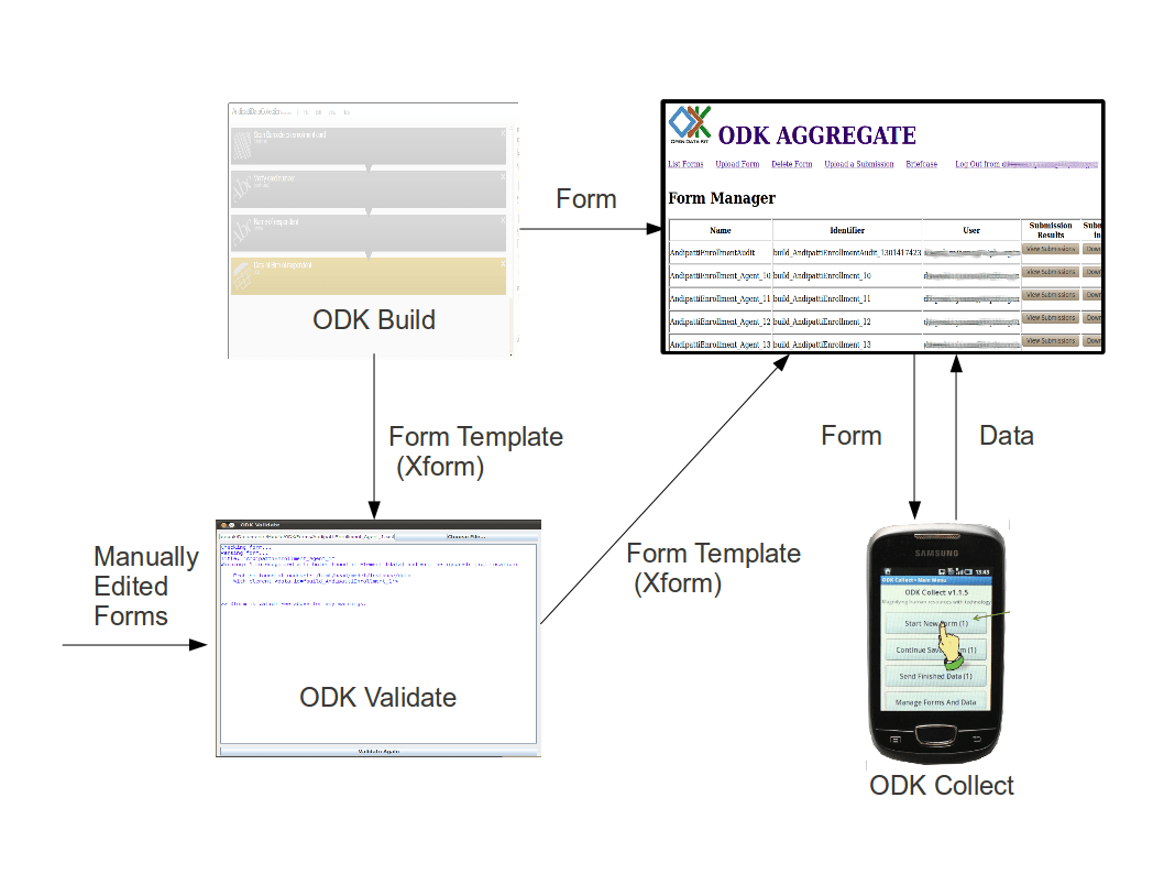 Для того, чтобы пользоваться ODK, нужно сделать три вещи: создать форму, настроить сервер и соединить мобильное устройство с сервером. Как только вы это сделали, вы можете начать собирать данные.