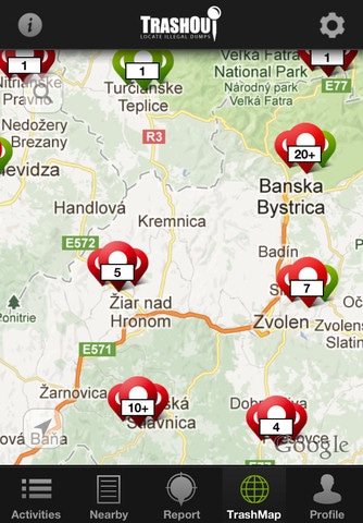 Разработчики приложения TrashOut – молодые эко-активисты из Словакии, решившие создать эффективный инструмент, который позволит определять, фиксировать и актуализировать точное местоположение несанкционированных свалок на мировой карте с помощью мобильного телефона. В начале 2013 года приложение TrashOut вошло в число финалистов Европейского Кубка лучших приложений для мобильных телефонов (European AppCup).