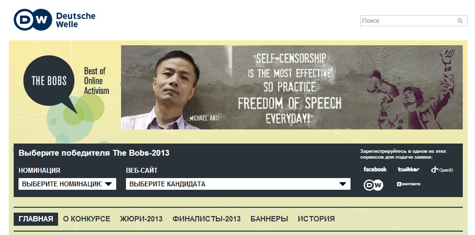 Вы можете поддержать понравившийся блог в онлайн-голосовании. Чтобы принять участие в голосовании, необходимо зарегистрироваться под своей учетной записью в Facebook, Вконтакте, Twitter или воспользоваться сервисом Open ID или DW. Отдать свой голос в каждой номинации можно не более одного раза в сутки. Голосование пользователей завершится 7 мая.