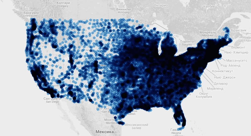 С помощью карты можно убедиться в том, как много библиотек в США: