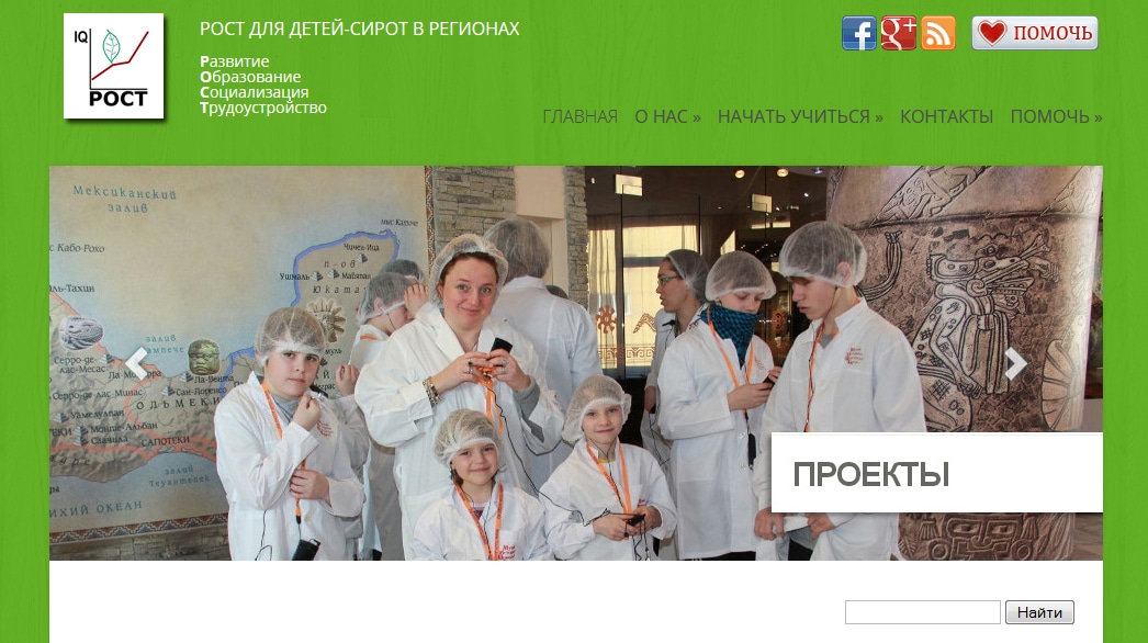 Организация реализует масштабную программу социальной адаптации детей-сирот. Главная цель – повысить уровень образования и общего развития в региональных детских домах и интернатах с помощью современных технологий – интернет-уроков с квалифицированными педагогами. Новые возможности для образования и развития помогают ребятам лучше адаптироваться к жизни после детского дома (т.е. способствуют их социализации) и найти интересную работу (трудоустройство).