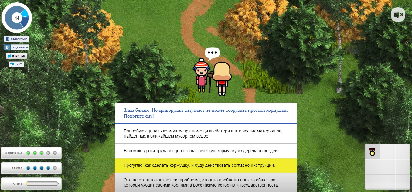 Мы упоролись и сделали браузерный квест о восхождении к вершинам волонтерства. Куча оружия, мощные боссы, спасение котят.