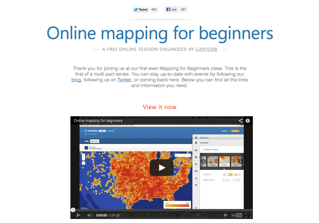 Для тех, кто не имеет опыта в картографировании и кому сложно освоить CartoD, руководители проекта выпустили серию образовательны курсов, разбитых на 5 тематических частей.
