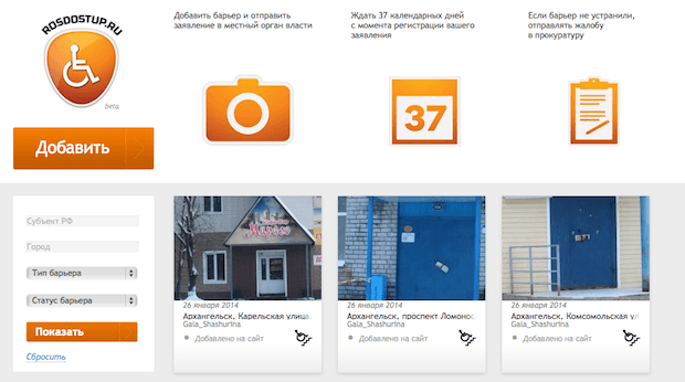 Росдоступ помогает сделать городскую среду адаптированной для передвижения маломобильных групп граждан — и помочь в этом может каждый. Приложение позволяет добавить на сайт фото и описания объектов инфраструктуры, недоступных для людей на инвалидных колясках, мам с детскими колясками. Вместе с тем оно генерирует форму заявки, которую можно отправить в местный орган власти по обычной почте или email.
