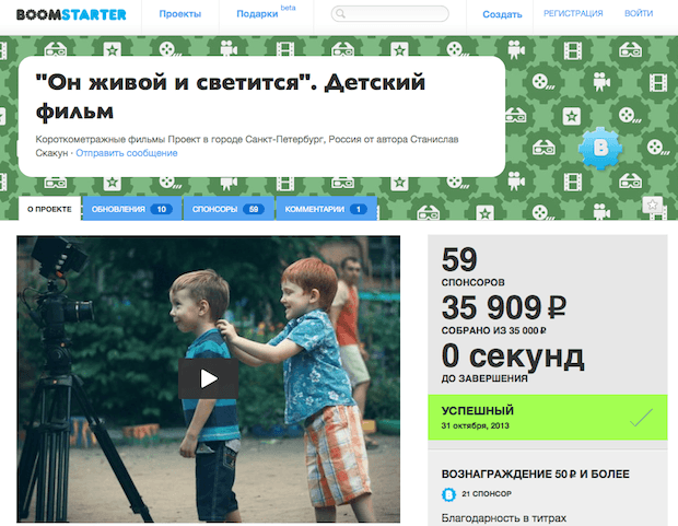 Чтобы снять фильм для детей, режиссер Станислав Скакун организовал кампанию по сбору средств на краудфандинговой платформе Boomstarter.ru