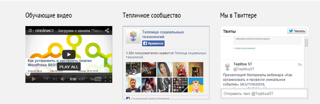 Специальные кнопки на сайте, ведущие на ваши группы в соцсетях. Они могут быть помещены в «шапку» и в футер сайта.