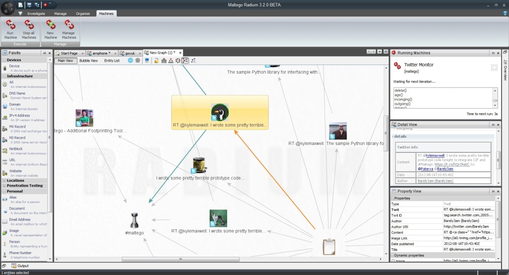 Уже разработаны программные инструменты, которые прямо противоречат Правилам этического использования данных Twitter, а именно — автоматически собирают данные о конкретных пользователях и организациях. Среди таких программ — Maltego и Creepy.