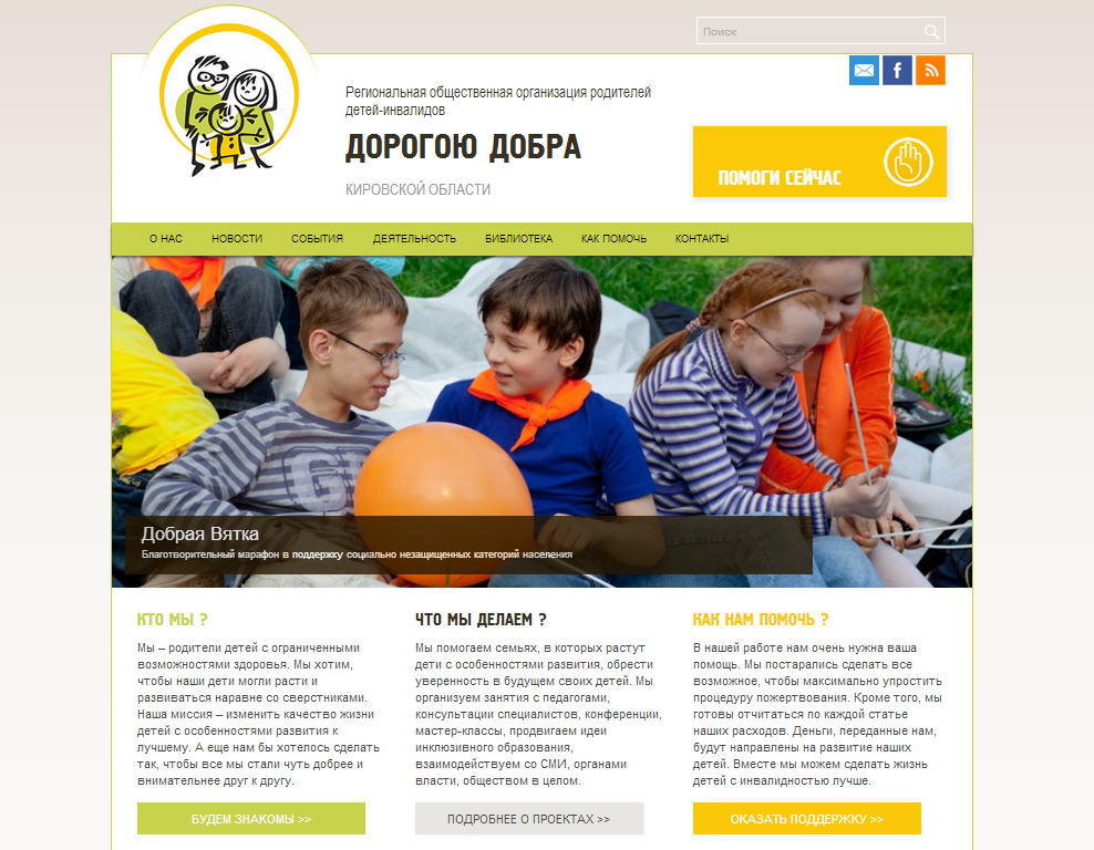 Важная часть работы организации – взаимодействие с органами власти, детскими садами, школами, реабилитационными центрами, другими общественными организациями и фондами, поэтому так важно иметь понятный и информативный сайт.