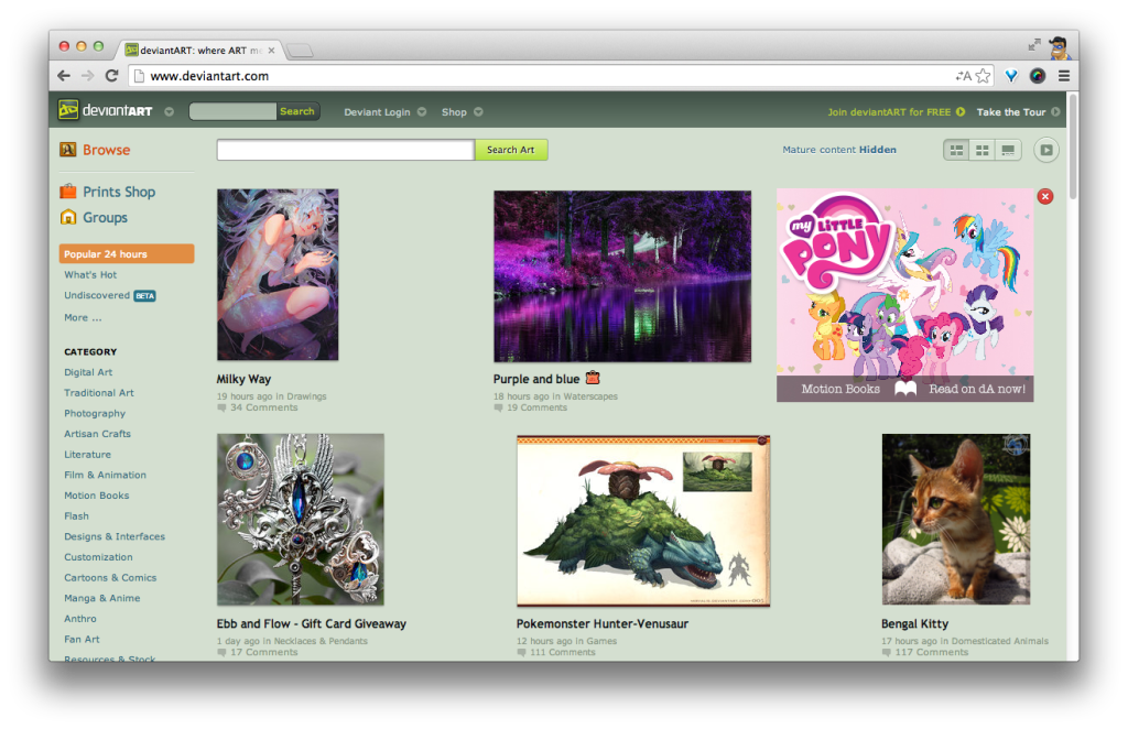 DeviantArt – это первая и крупнейшая в мире социальная платформа для художников, писателей, дизайнеров, фотографов.