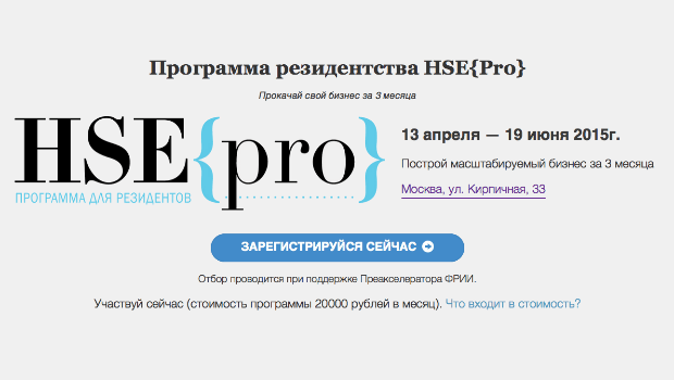 До 5 апреля Бизнес-инкубатор НИУ ВШЭ проводит отбор участников на программу обучения и поддержки начинающих предпринимателей HSE{Pro}. Основной задачей программы станет проработка бизнес-проектов до уровня рабочего прототипа и готовности к первым продажам. Программа рассчитана на три месяца и стартует 13 апреля.