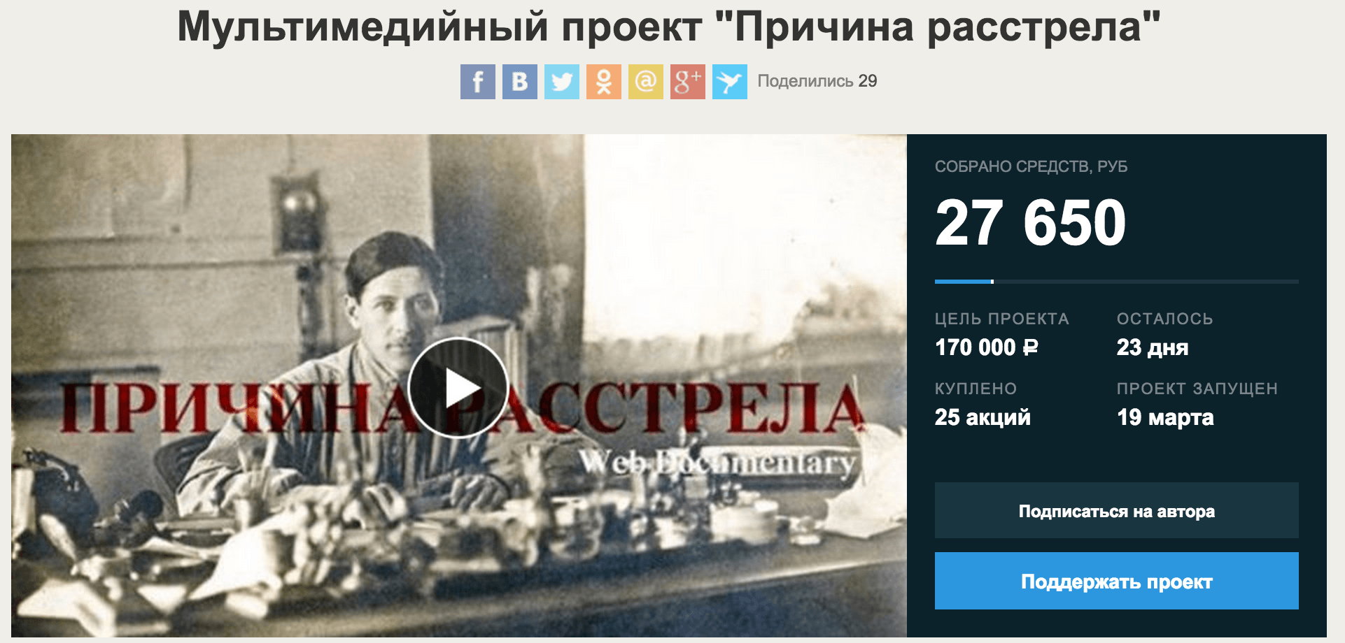 В проекте «Причина расстрела» авторы попытаются ответить на этот вопрос с помощью нового языка повествования – веб-док.