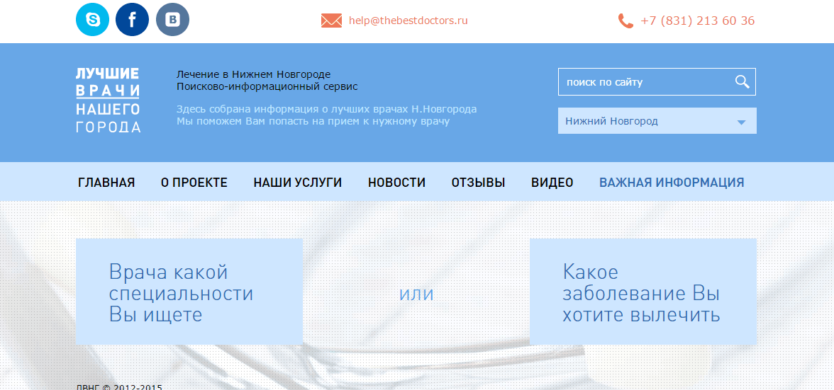 Изначально он задумывался как сервис, который позволит найти информацию о лучших врачах Нижнего Новгорода. Но практика показала, что будет больше пользы, если с помощью сайта пациенты смогут сразу записываться на прием.