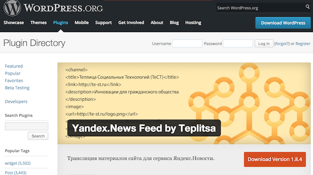 Скачать новую версию плагина Yandex.News Feed by Teplitsa 1.8.4