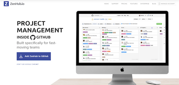 ZenHub – полнофункциональный инструмент управления проектом. Он позволяет закачивать файлы любого типа в комментарии и вопросы. Вы можете подключить несколько репозиториев и самостоятельно настроить интерфейс под рабочий процесс. ZenHub работает в родном интерфейсе GitHub.
