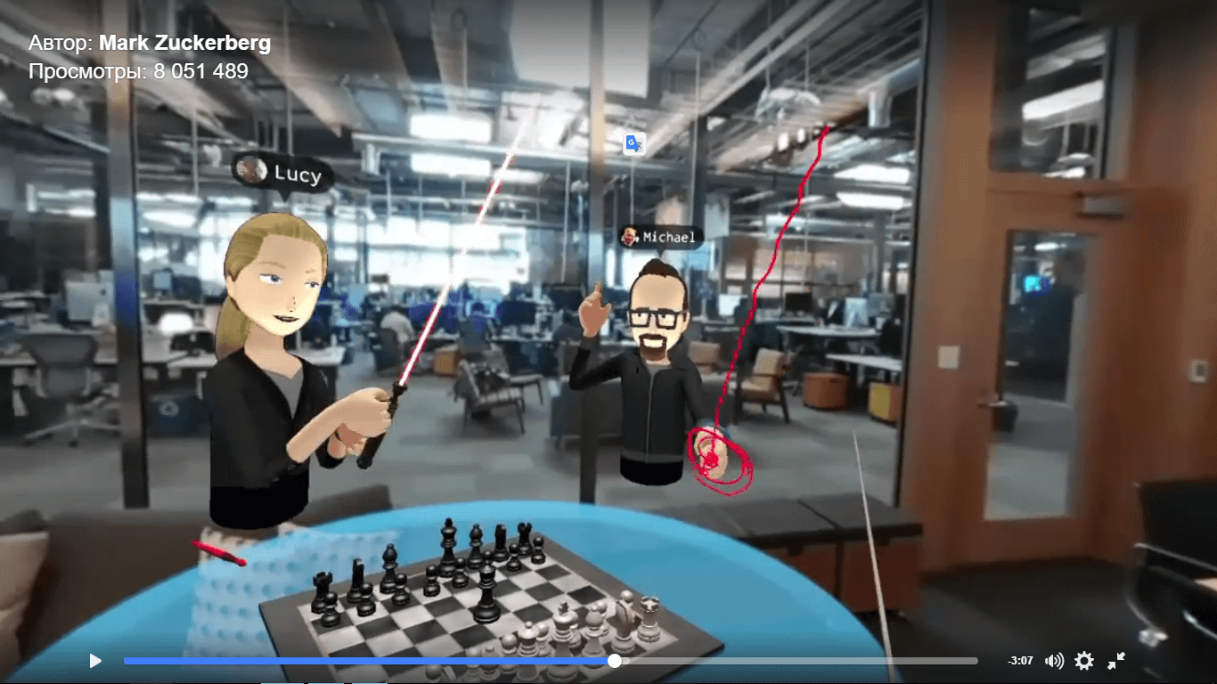 Такую реальность продемонстрировал на конференции Oculus Connect Марк Цукерберг. Эта компания занимается созданием нового шлема виртуальной реальности. Цукерберг рассказал о необычной функции шлема – общение с живыми людьми в образе цифровых двойников. Он показал виртуальное окружение, совмещенное с дополненной реальностью. Внутри него люди смогут встречаться и общаться со своими друзьями в форме анимированных персонажей, смотреть вместе фильмы, сражаться при помощи мультяшного оружия или же играть в настольные игры.