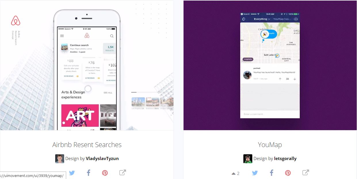 Информационный сайт, на котором публикуются только примеры дизайна пользовательского интерфейса. У сайта большая коллекция интерфейсной анимации. Вы можете найти самые популярные анимации для любого элемента дизайна, который вам интересен. Например, анимацию для дизайна карт. Ресурс состоит из двух рубрик: вдохновение и видео пользователей.