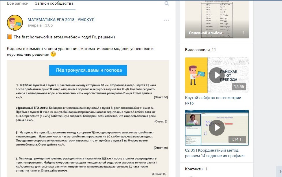Также в группе есть посты для обсуждений решений определенных заданий. Так участники группы объединяются, общаются, что помогает уменьшить волнение перед экзаменами и создать условия для взаимопомощи.