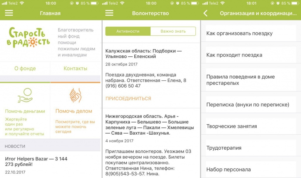Благотворительный фонд помощи пожилым людям и инвалидам «Старость в радость» запустил одноименное мобильное приложение для волонтеров. С его помощью жителям Москвы можно узнать, в каких городах требуется помощь и когда можно поехать в дом престарелых. Замредактора Теплицы Наталья Баранова протестировала сервис.