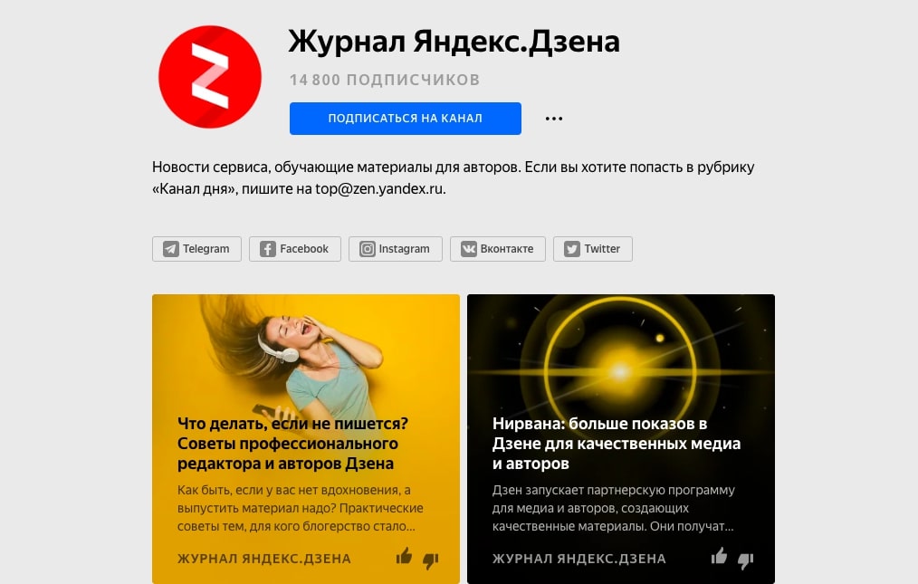 Есть два варианта работы с Яндекс.Дзен: создать личный канал и стать автором канала или подключить ваш сайт, но для этого необходимо отправить специальную заявку. Подробнее о том, как настроить Яндекс.Дзен, авторам и владельцам сайтов можно почитать в инструкции.