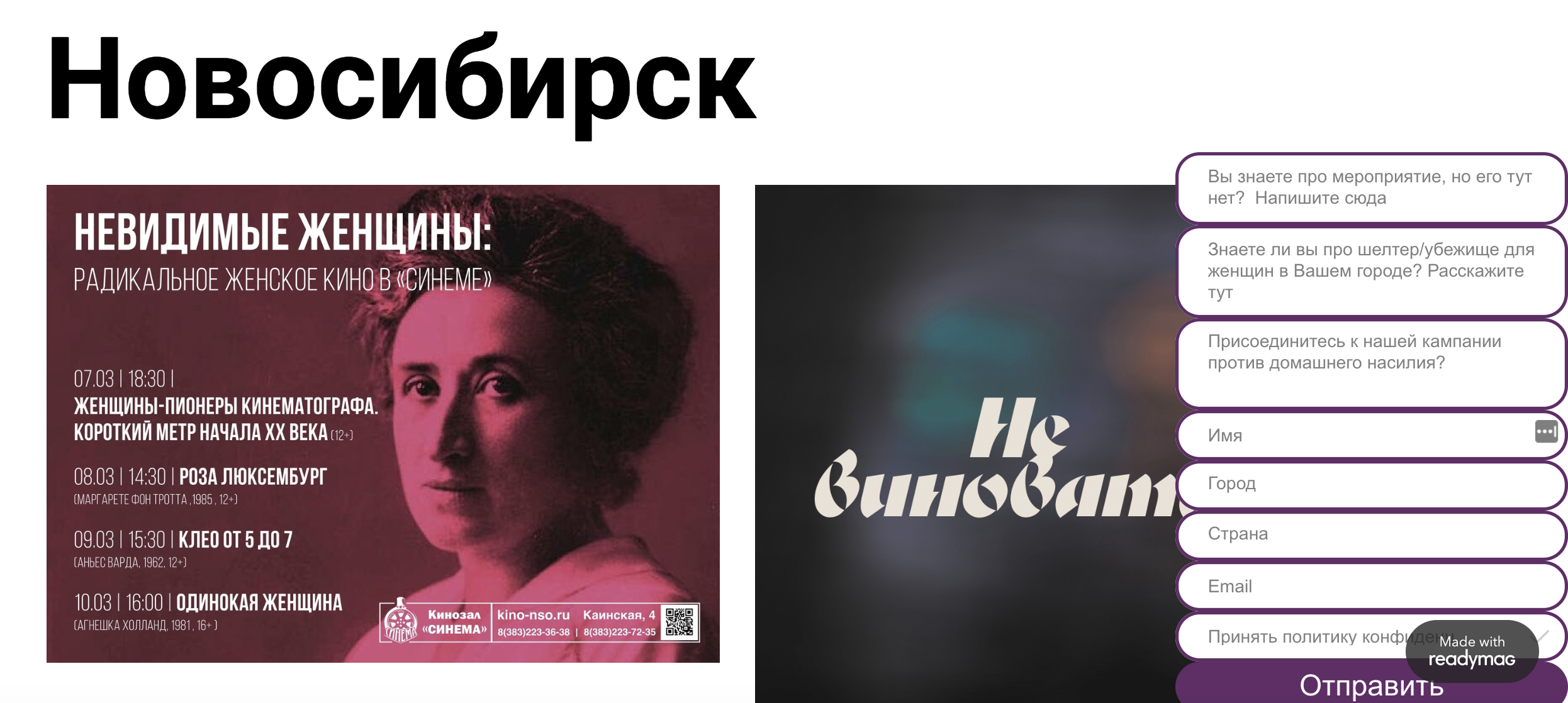 Есть возможность рассказать в форме обратной связи про убежище для женщин в вашем городе. Изучив карту, сможете узнать про инициативы, которые есть в других городах, и присоединиться к сообществу.