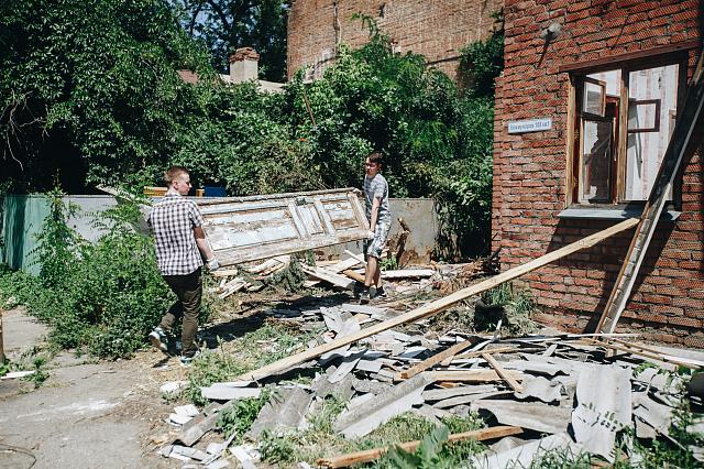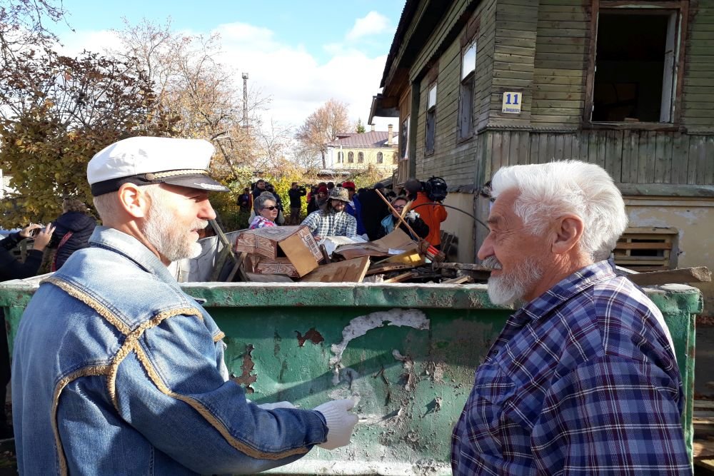 Хельга Шошина, активистка сообщества «Помоги городу», координатор местного «Том Сойер феста», рассказывает, что дом удалось перехватить от сноса в момент, когда рабочие уже сняли крышу.