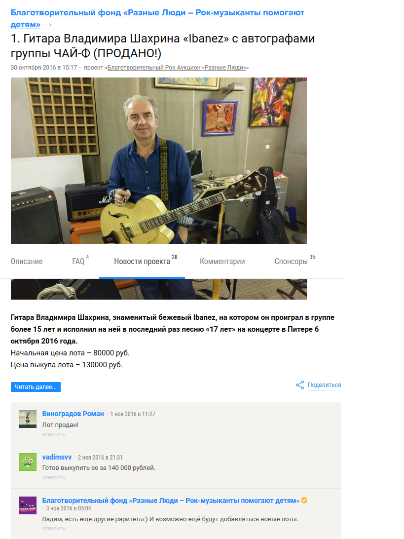 При этом покупать «кота в мешке» никто не хочет. Обязательно нужны красивые фотографии лота. Если этот лот предоставил какой-то известный человек – фотографии «звезды» с лотом. Организаторы «НАШЕСТВИЯ» размещали в новостях проекта «пруфы»: снимали артистов во время подписи ими собственных портретов, а также делились в СМИ цитатами музыкантов о благотворительном аукционе.