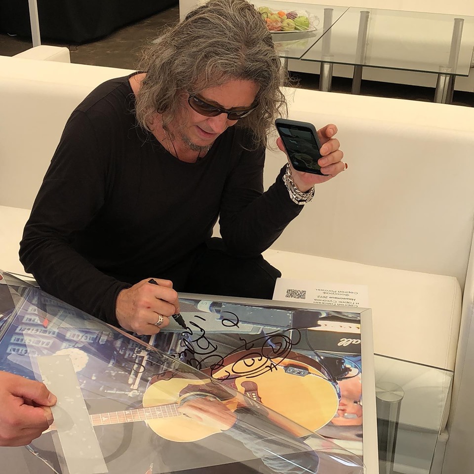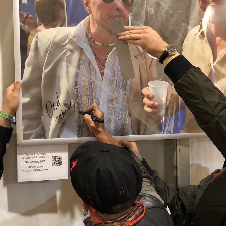 «На НАШЕСТВИИ видел несколько фотографий с прошлых фестивальных выступлений. Было интересно вспомнить. Стал расписываться сначала на таких небольшого формата фото, а потом принесли здоровенные 1х1 метр. Всегда приятно сознавать, что это не какое-то праздное дело, а все в копилку добрых дел». Сергей Галанин, бессменный лидер группы «СерьГа»