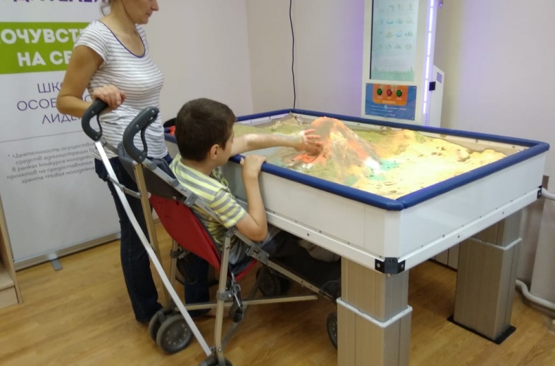Союз родителей детей-инвалидов установил интерактивную песочницу в своем реабилитационном центре в Томске. Песочница с дополненной реальностью адаптирована для детей на колясках. На песок транслируется изображение. Например, ребенок может насыпать горку песка, а устройство сделает из нее вулкан.
