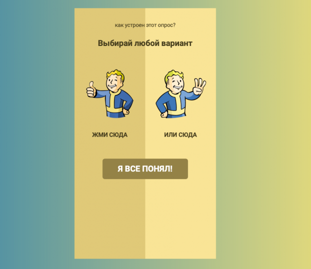 Плагин позволяет провести опрос и собрать данные, задав пользователям серию простых вопросов с двумя вариантами ответов.