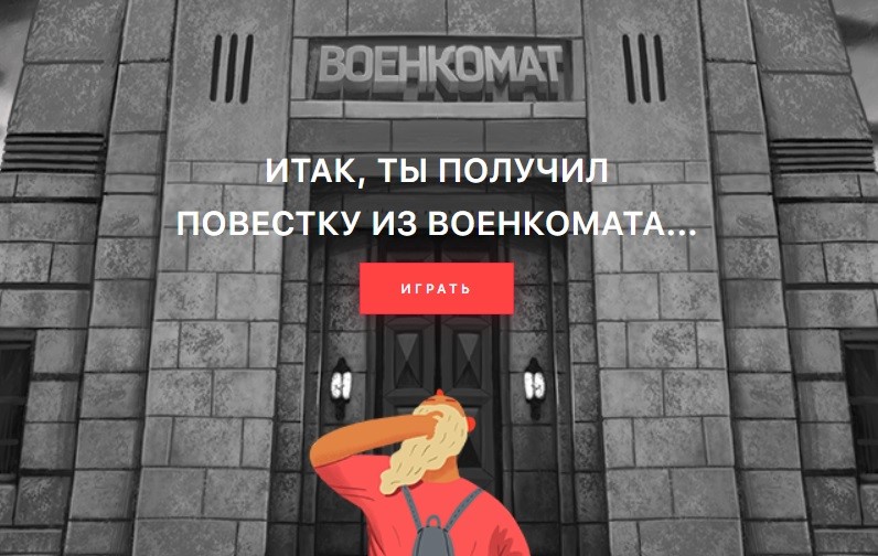 Правозащитники приурочили квест к осеннему призыву, который начнется 1 октября 2019 года, а молодые люди будут получать повестки о необходимости явки в военные комиссариаты. Пользователь смотрит на работу военкомата глазами призывника, убеждения которого не позволяют брать в руки оружие.