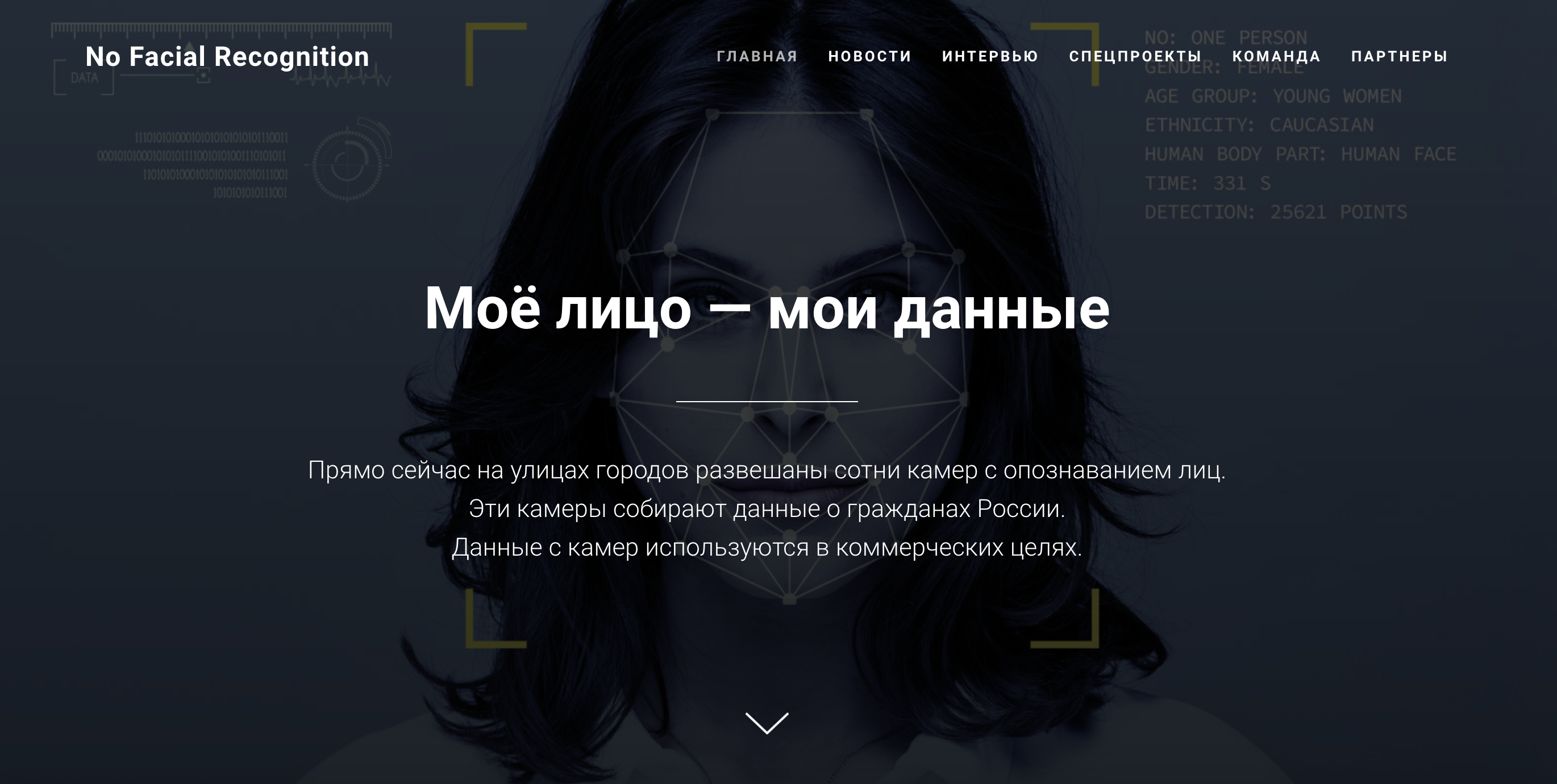 #nofacialrecognition – кампания против внедрения системы распознавания лиц. В кампанию входит петиция, дискуссии и четыре предложения по новым законам, которые разрабатываются с юридическим и академическим сообществом по защите приватности. Этот законопроект мы будем лоббировать в Госдуму.