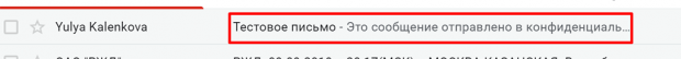 В списке входящих будет отображаться не только тема, но и конфиденциальный режим. А в теле письма отображается напоминание о закрытом доступе и запрете на пересылку.