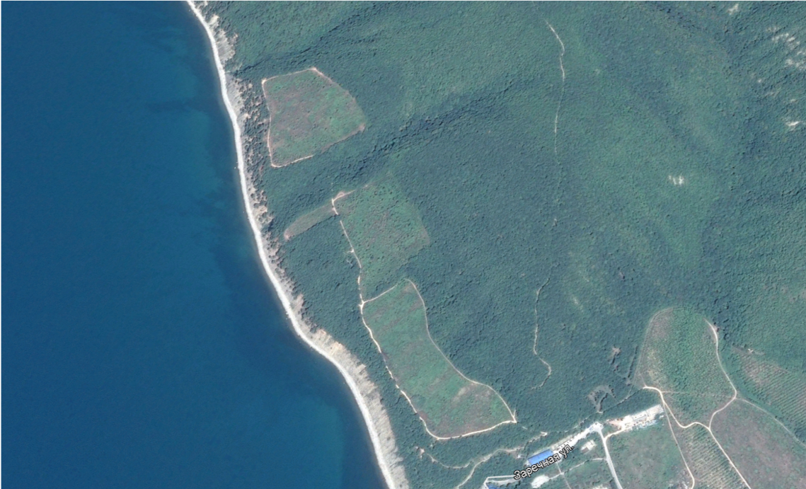 ГИС помогает анализировать изменения территорий с течением времени и следить за захватами ценных участков – особо охраняемых территорий, береговых зон, лесных массивов. В качестве примера Александр Савельев советует сравнить два скриншота из приложения GoogleEarth. На первом можно увидеть лес и заброшенные виноградники. Это снимок 2014 года.