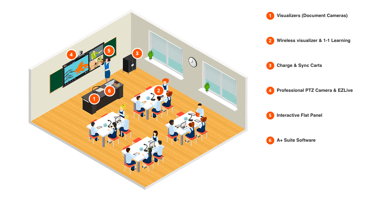 Компания Aver уже предлагает комплексные решения для оформления класса, отвечающего тенденциям EdTech. Планшеты для персонализированного обучения, мобильные зарядные блоки, интерактивные доски и визуализаторы, с помощью которых можно демонстрировать движущиеся объемные объекты, – все это уже доступная реальность.
