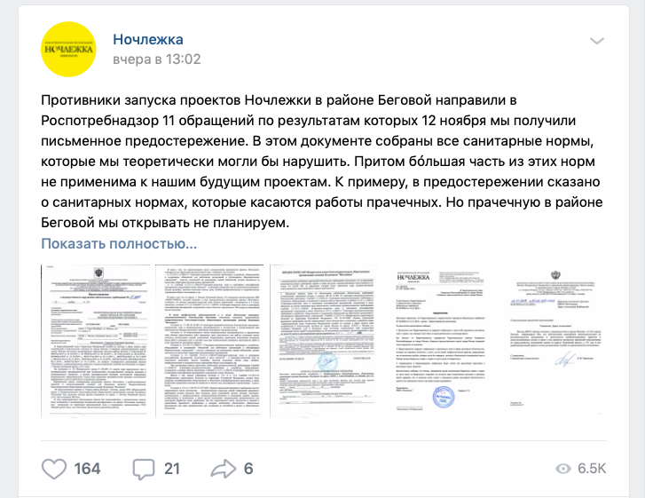 Но при этом в первые недели работы команда регулярно проверяла все упоминания с тегами и без, приходила в обсуждения, отвечала на вопросы или же опровергала домыслы и двусмысленные предположения. Было важно показать, что сотрудники видят комментарии, которые оставляют люди, следят за событиями и готовы со всей прозрачностью рассказывать о том, что и как делает «Ночлежка».