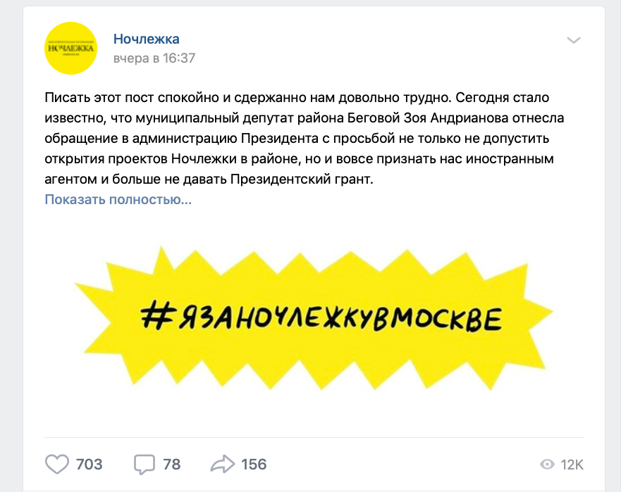 Устанавливать свой порядок и контролировать соблюдение правил команда могла только на собственных информационных площадках. Было решено не приходить в другие ветки, на личные страницы или страницы других групп, чтобы успокоить тех, кто слишком рьяно защищает «Ночлежку» или, наоборот, высказывается против. У этой стратегии есть минус: сотрудники часто слышат, что организация ведет себя агрессивно, ведь под «Ночлежкой» понимаются еще и люди, которые ее поддерживают.