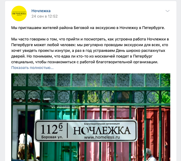 В сентябре 2019 года команда «Ночлежки» рассказала, что планирует открыть Реабилитационный приют и Консультационную службу в Беговом районе Москвы. С этого началась новая глава этой непростой истории. Вот несколько основных пунктов, на которых строится разница между стратегиями коммуникации в кейсе Савеловского и кейсе Бегового.