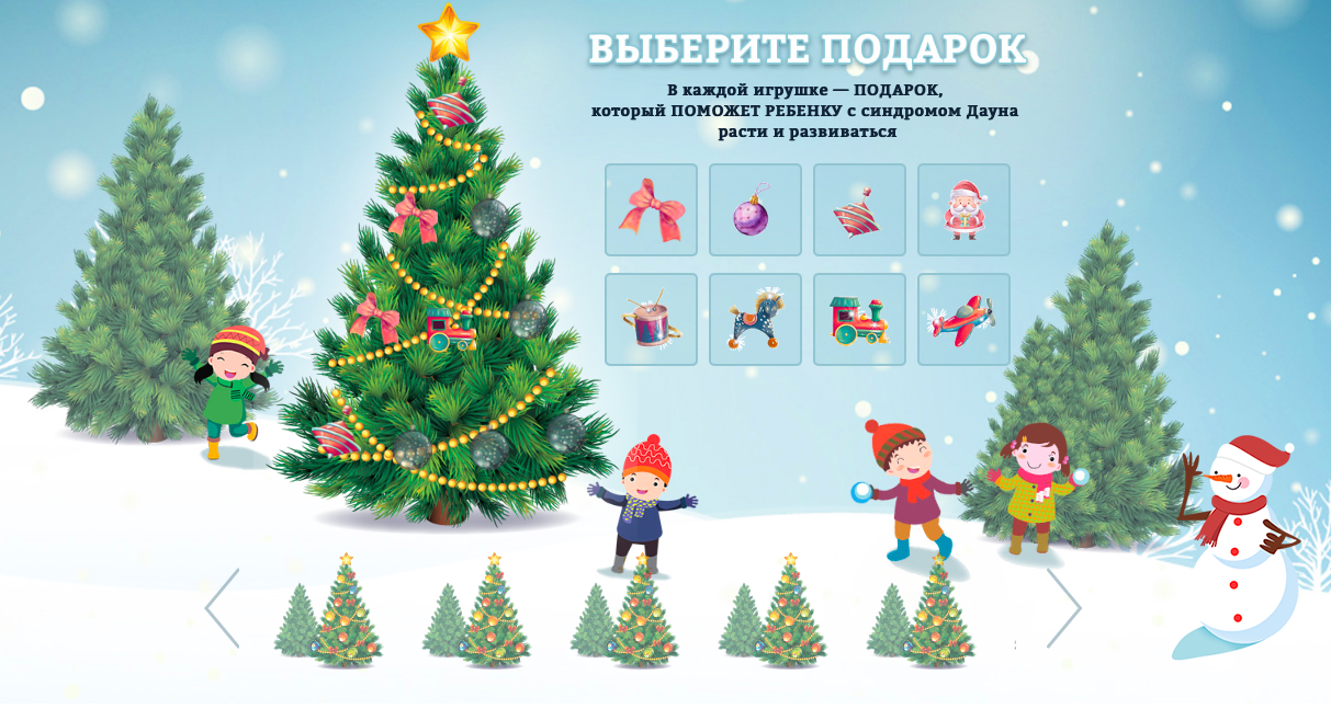 Благотворительный фонд поддержки людей с синдромом Дауна «Синдром любви» проводит благотворительную онлайн-акцию «Чем дальше в лес». Акция, которая уже стала традиционной, проходит на сайте организации. Пользователи зажигают игрушки на виртуальных елках, делая пожертвования. Каждая игрушка – это занятие с логопедом, консультация дефектолога или психолога, комплект методической литературы или подписка на журнал «Сделай шаг» для родителей ребенка с синдромом Дауна. Также все желающие могут оставить личное пожелание ребенку и его родителям, разместить свою фотографию в игрушке и позвать друзей в волшебный лес через социальные сети.