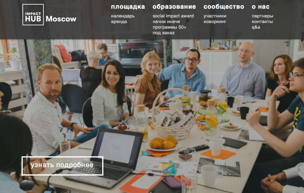 Например, так работает центр поддержки социальных инноваций и предпринимательства, а также площадка для работы и проведения мероприятий Impact Hub Moscow. Проект входит в международную сеть Impact Hub. На площадке проходят тренинги, семинары, благотворительные мероприятия. Команда центра также организует различные образовательные программы.