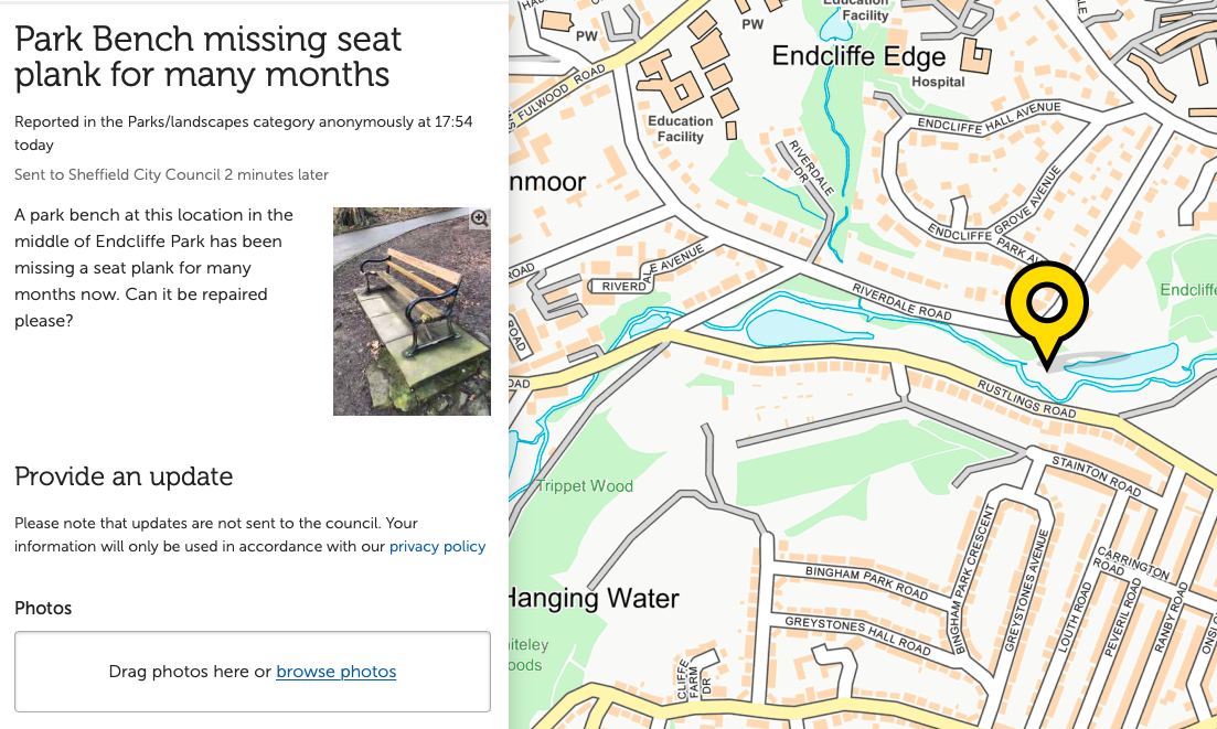 Также в 2007 году стартовал самый известный проект mySociety FixMyStreet. Это сервис, с помощью которого можно информировать местные органы власти в Соединенном Королевстве о различных проблемах. Житель видит яму на дороге, свалку, неработающий светофор, открывает FixMyStreet, выбирает на карте точку, где он столкнулся с проблемой, и отправляет сообщение городским службам.