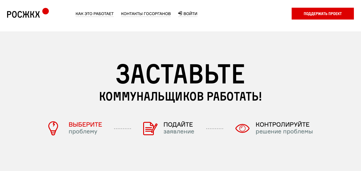 Еще один проект Алексея Навального и Фонда борьбы с коррупцией* (признан в России иноагентом, а также экстремистской организацией и запрещен) – РосЖКХ. Это автоматизированный сервис для подачи заявлений об административных правонарушениях в государственные органы. Работает он по похожему с «Росямой» принципу. Пользователь выбирает типовую проблему из предложенных, кратко ее описывает, указывает свой адрес и автоматически сгенерированное платформой заявление со ссылками на законодательство отправляется в региональные органы власти.