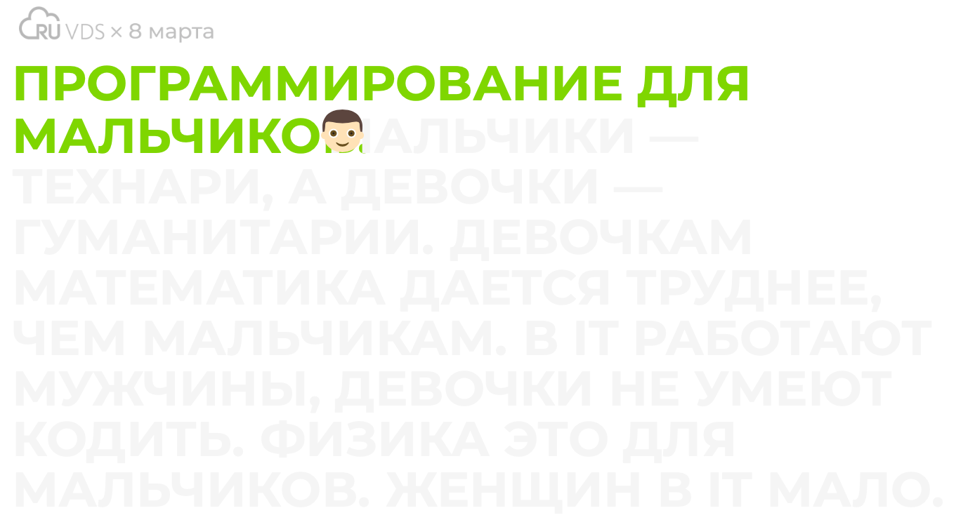 Команда IT-компании RUVDS запустила на сайте счетчик, отображающий количество девушек в профессии и ленту из этих специалисток. Девушки, которые также работают в сфере IT, могли залогиниться и рассказать о себе. Цель проекта — продемонстрировать присутствие женщин в этой «традиционно мужской» профессии и сломать стереотипы.